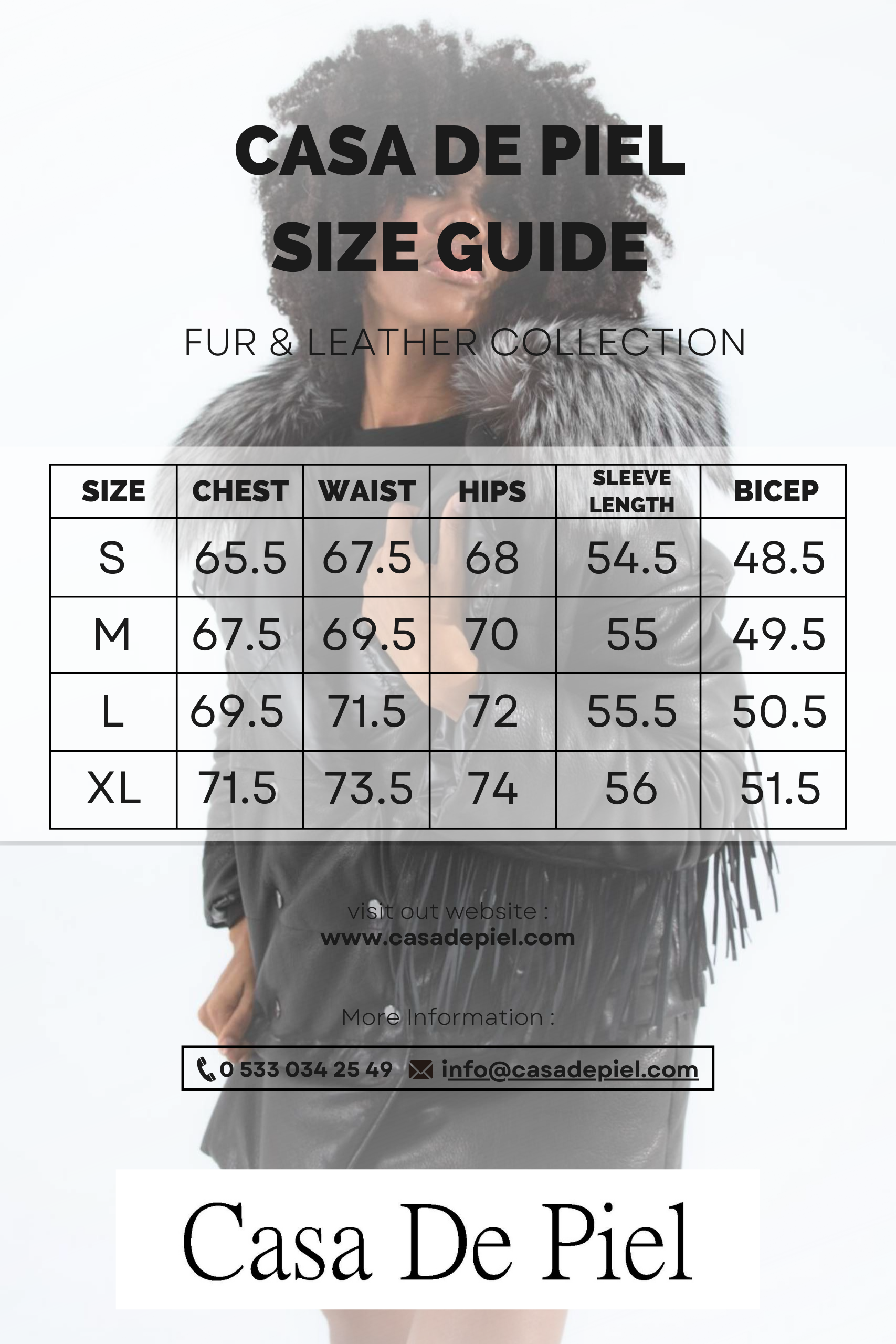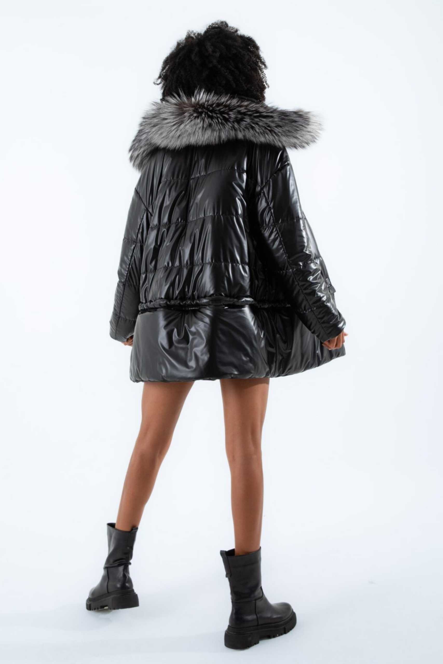 Önden metal çakma çıtçıt ile kapamalıdır. Çift taraflı kullanım özelliğine sahiptir; deri ve tekstil yüzüyle giyilebilir. Alt etek kısmı isteğe bağlı olarak 20 cm kısaltılabilmektedir. Yaka kısmındaki kürk çıkarılabilir olup, gerçek Arjante tilkisi ile kombinlenmiştir. Ön ve kol kısımlarında püskül detayları bulunmaktadır.