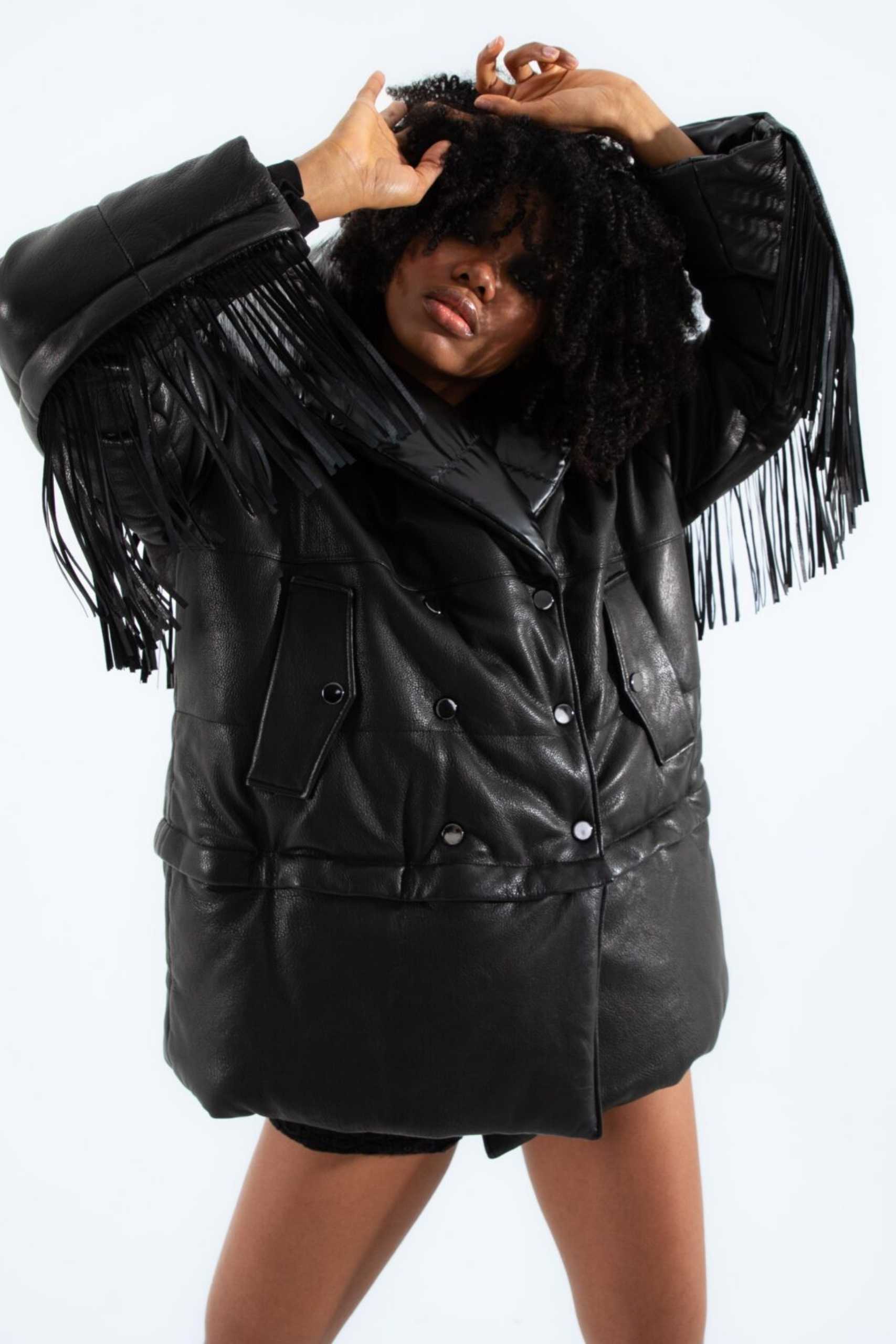 Çift Taraflı Arjante Aksesuarlı Püskül Detaylı Ceket