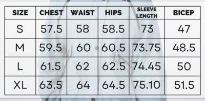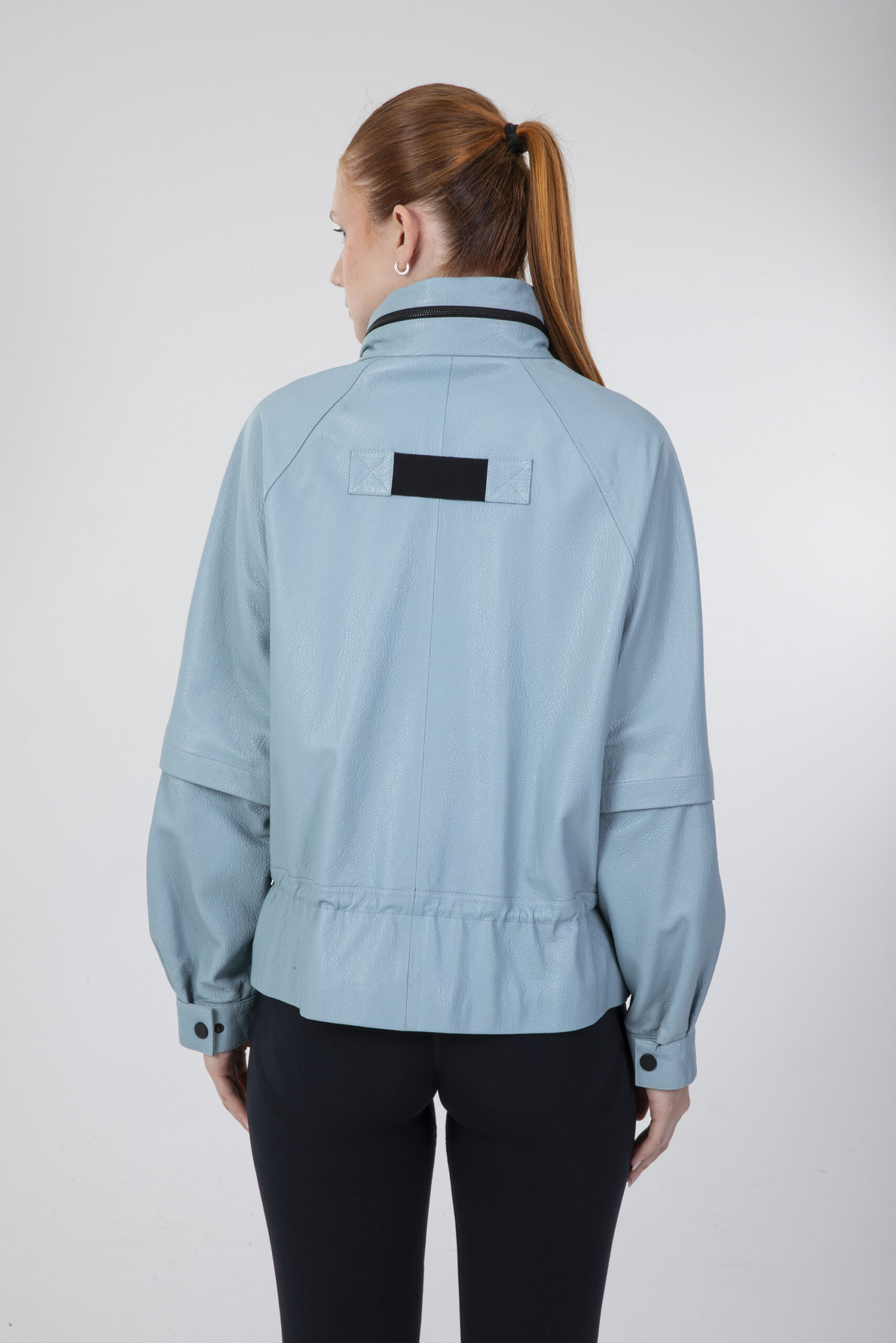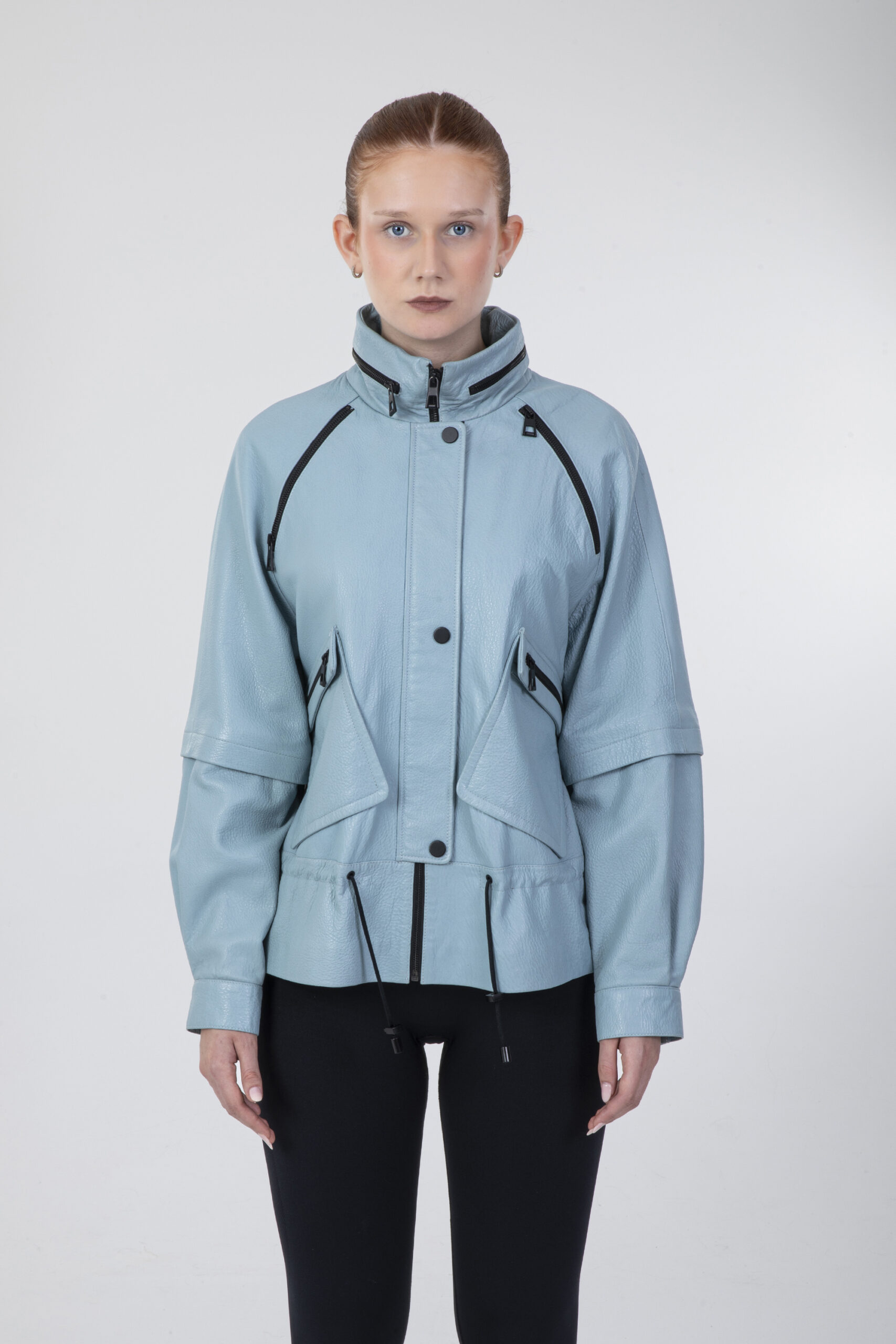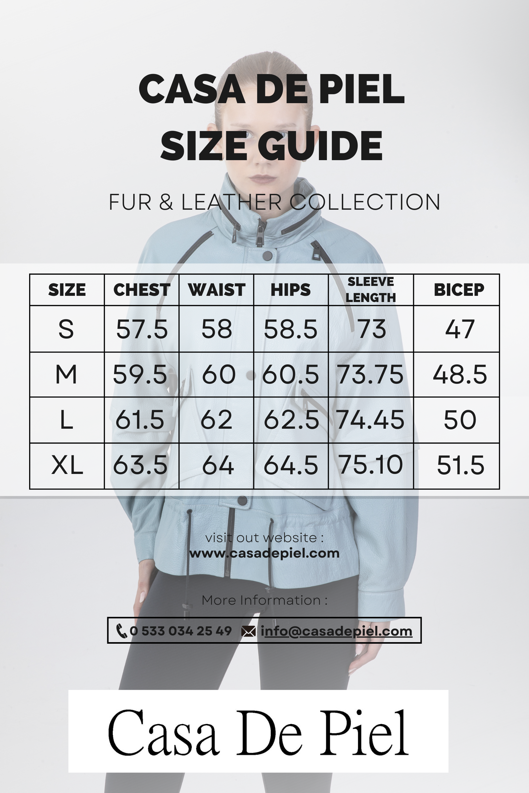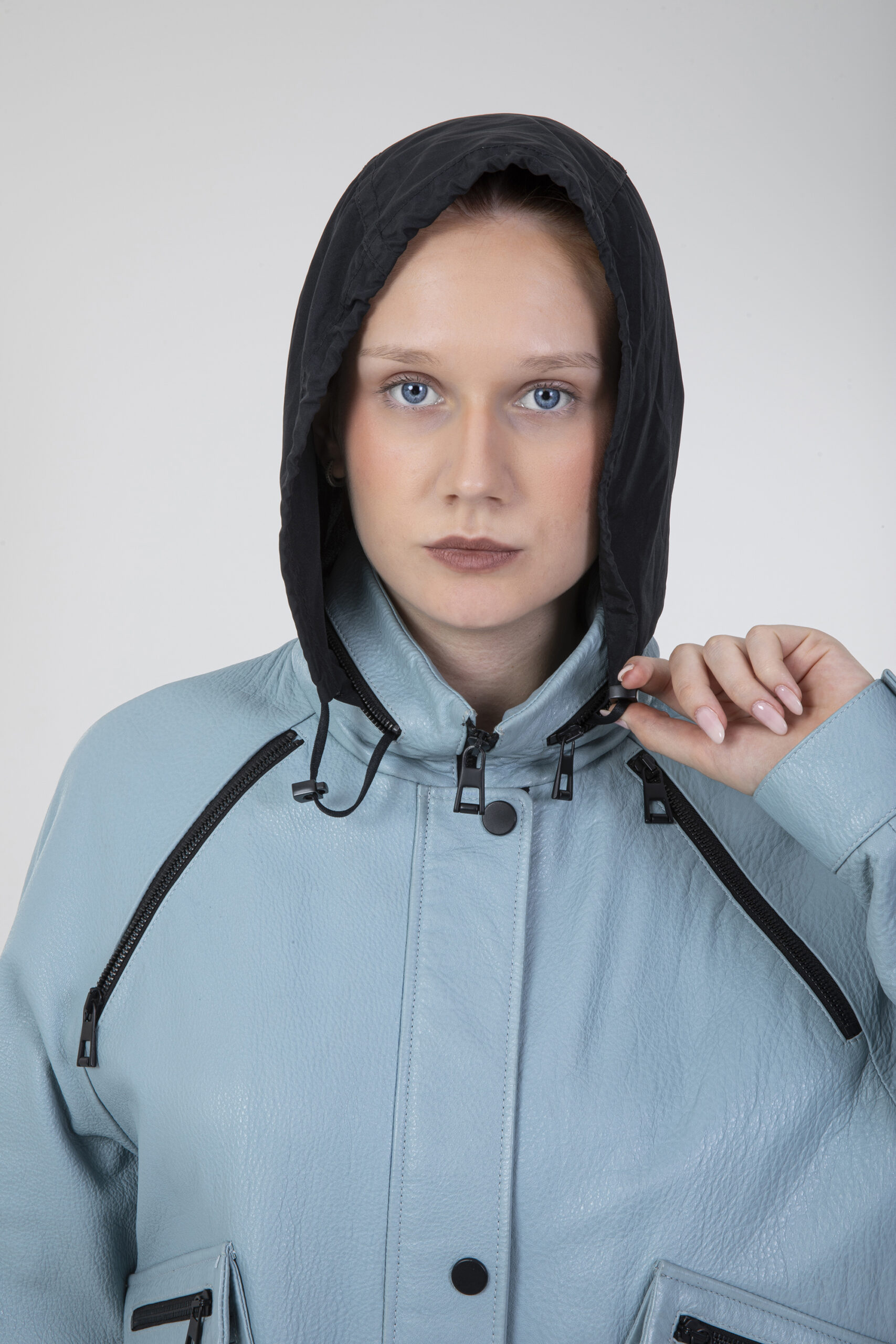 Önden metal fermuar ile kapamalıdır. Kol uzunluğu fermuar desteğiyle kısaltılabilir. Yaka içi fermuarla gizlenmiş kumaş kapşonludur. Etek kısmı lastik ile ayarlanabilir. %100 koyun derisinden üretilmiştir.