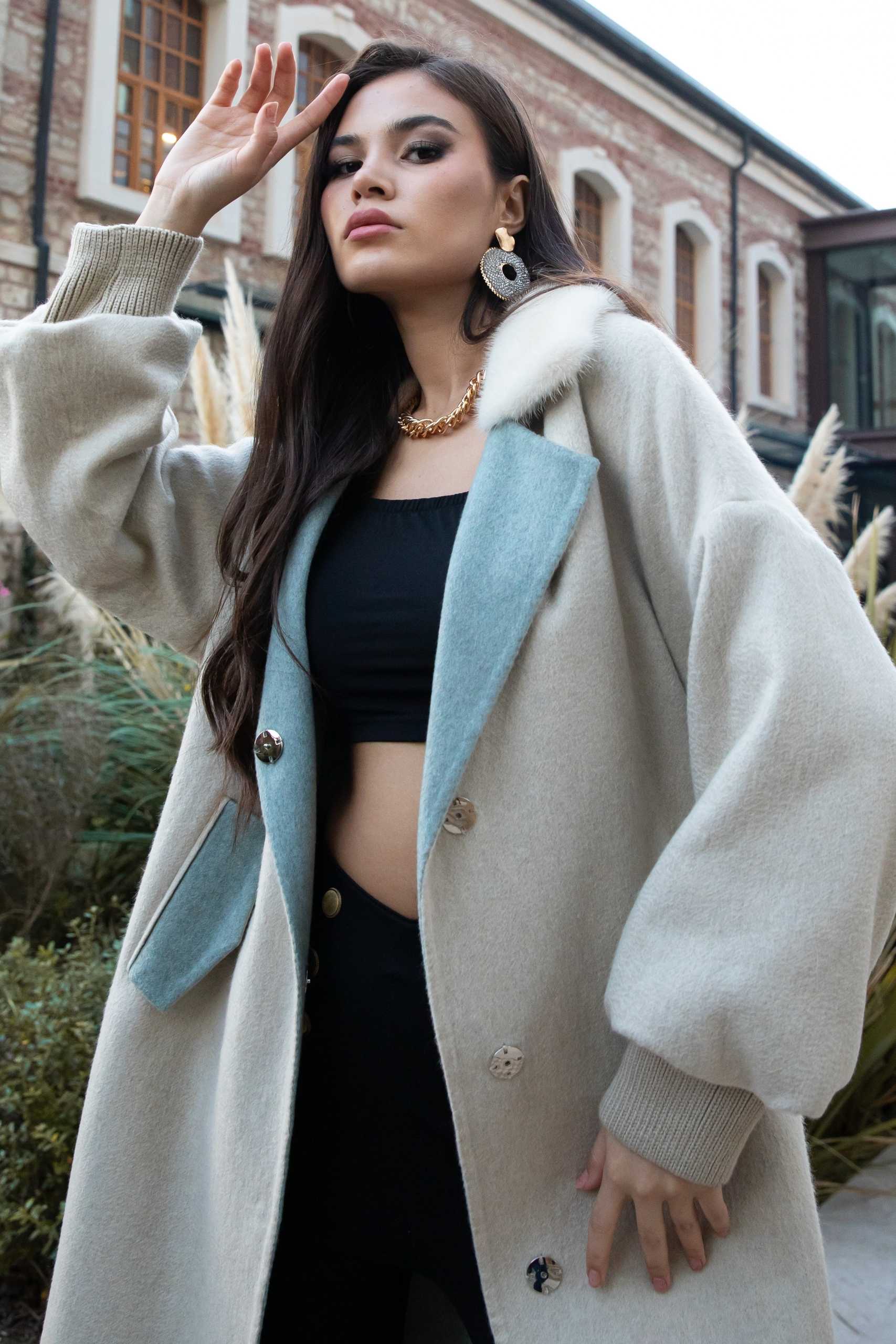 Vizon Yakalı Alpaka Kumaşı Kaban